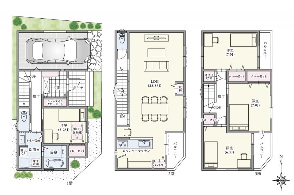 - 土地面積:73.10㎡、延床面積:134.03㎡