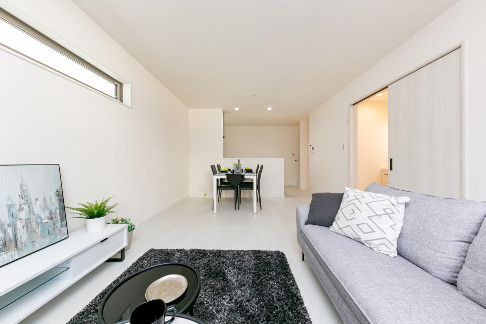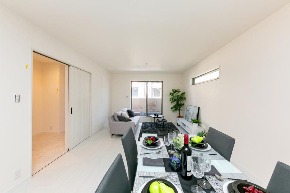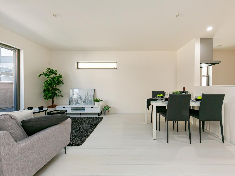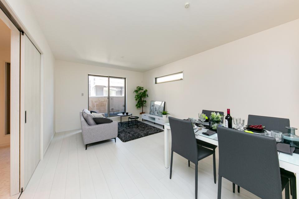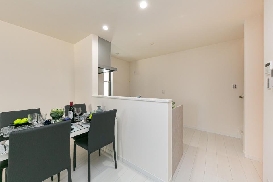キッチンには浄水器一体型水栓や、食器洗浄乾燥機、大容量のスライド式収納など、快適な家事をアシストする設備が標準仕様。