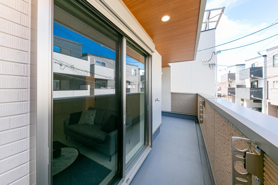 ランドリースペースからは、バルコニーへ直接アクセス可能。シーツを洗って手早く干すことができ、お洗濯が快適にはかどります。