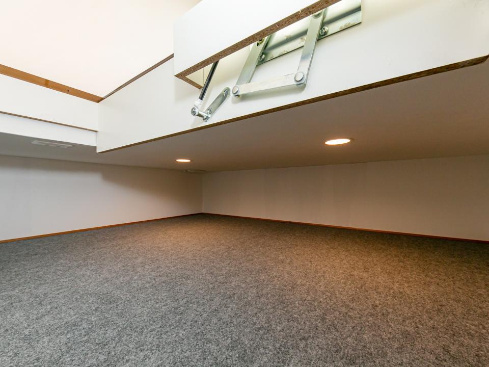 屋根裏収納に比べ、荷物をしまうのも取り出すのも圧倒的に簡単で安全に。出し入れの際に手間取らず、片付けの時短が叶います。照明を設置しているので、探したいお荷物が見つかりやすく安心です。