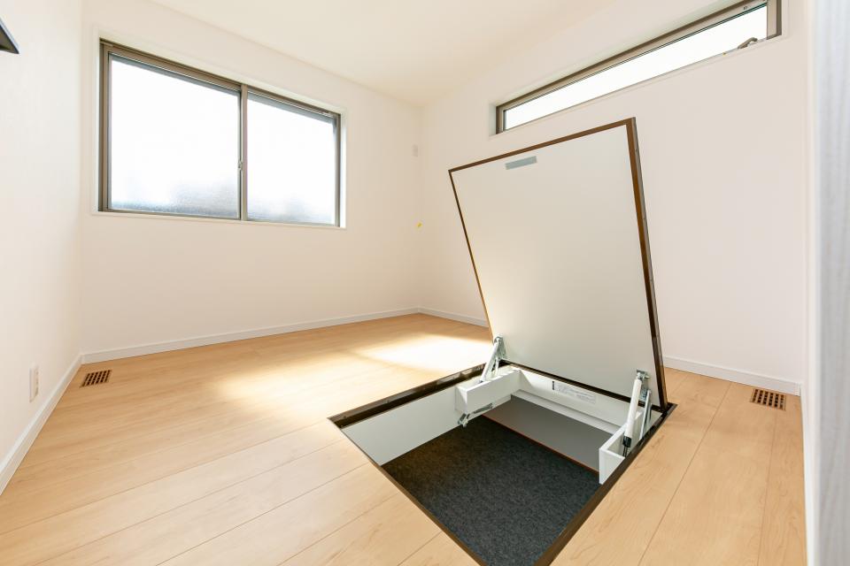 1階の洋室には、フジヒサオリジナルの床下収納庫「タルパ」付きです。